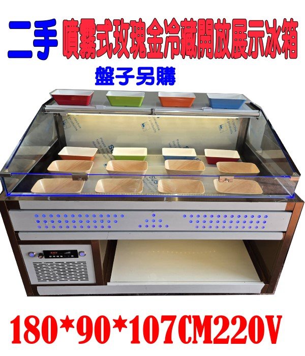 二手6尺噴霧玫瑰金開放式展示冷藏冰箱/304款台灣現貨組裝/水霧牛肉保鮮冰櫃海產店火鍋麻辣燙鹽酥雞滷味魯味炭烤碳烤燒肉烤肉