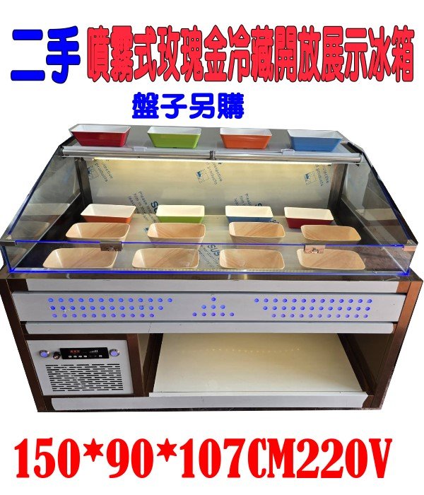 二手九成新5尺噴霧玫瑰金平面展示冷藏冰箱/304款組裝/水霧牛肉保鮮冰櫃海產店火鍋麻辣燙鹽酥雞滷味魯味炭烤碳烤燒肉烤