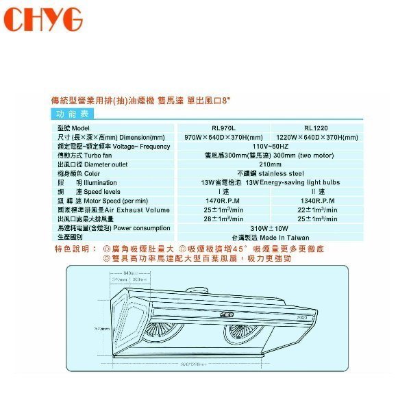 型號:RL1220-L隆泰傳統型營業用排抽油煙機(雙馬達)