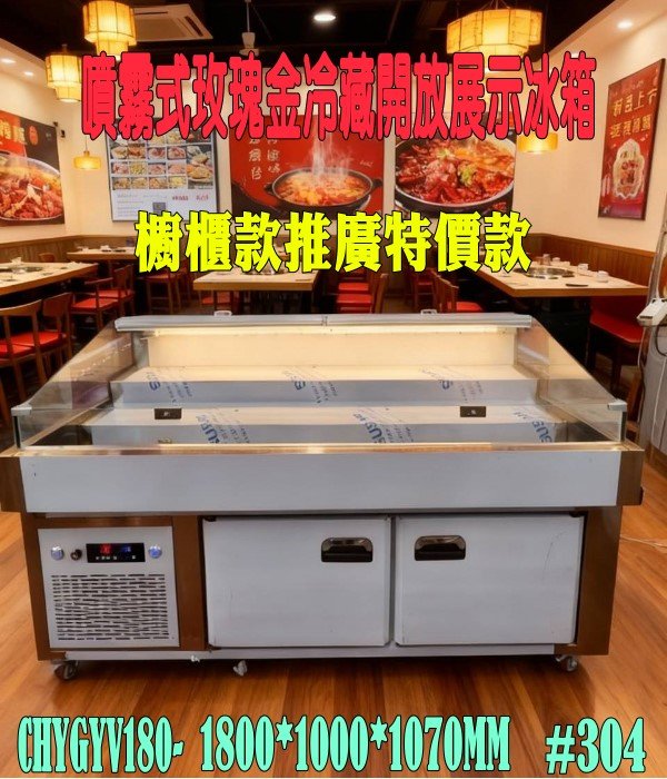 限量推廣款特價6尺噴霧玫瑰金開放式展示櫥櫃款冷藏冰箱/台灣專利所有304款台灣現貨組裝/水霧牛肉保鮮冰櫃海產店火鍋麻辣燙鹽酥雞滷味魯味炭烤碳烤燒肉烤肉