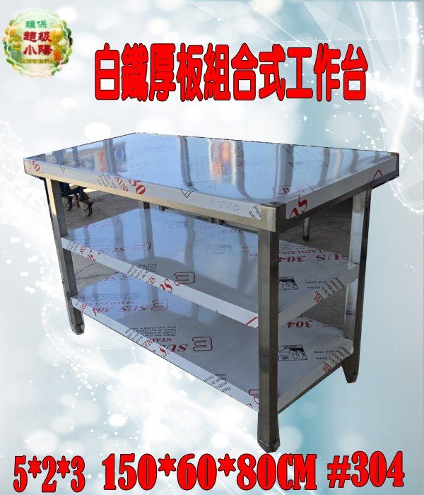 產品名稱:全新5尺x2尺x連面3層白鐵厚板組合式豪華型工作台