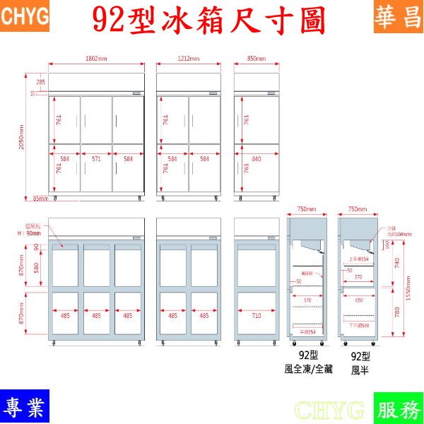 全新DAYTIME四門全冷藏冰箱/92型/4門冰箱/四門自動除霜型全冷藏/風冷/得台/冷凍尖兵/餐飲設備/營業用