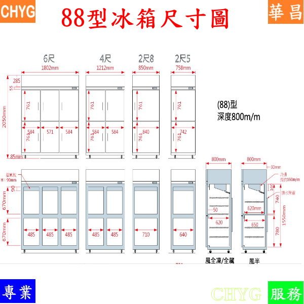 尺寸:長850mm×寬800mm×高2050mm 容積:755L